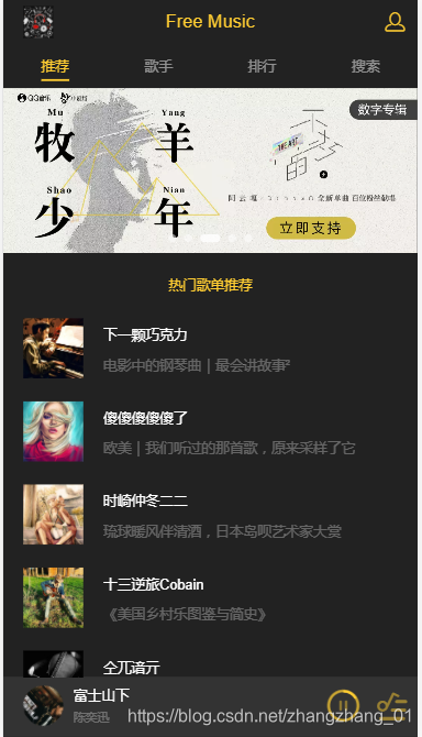 github: https://github.com/LuckyZhangWeiwei/free-music
