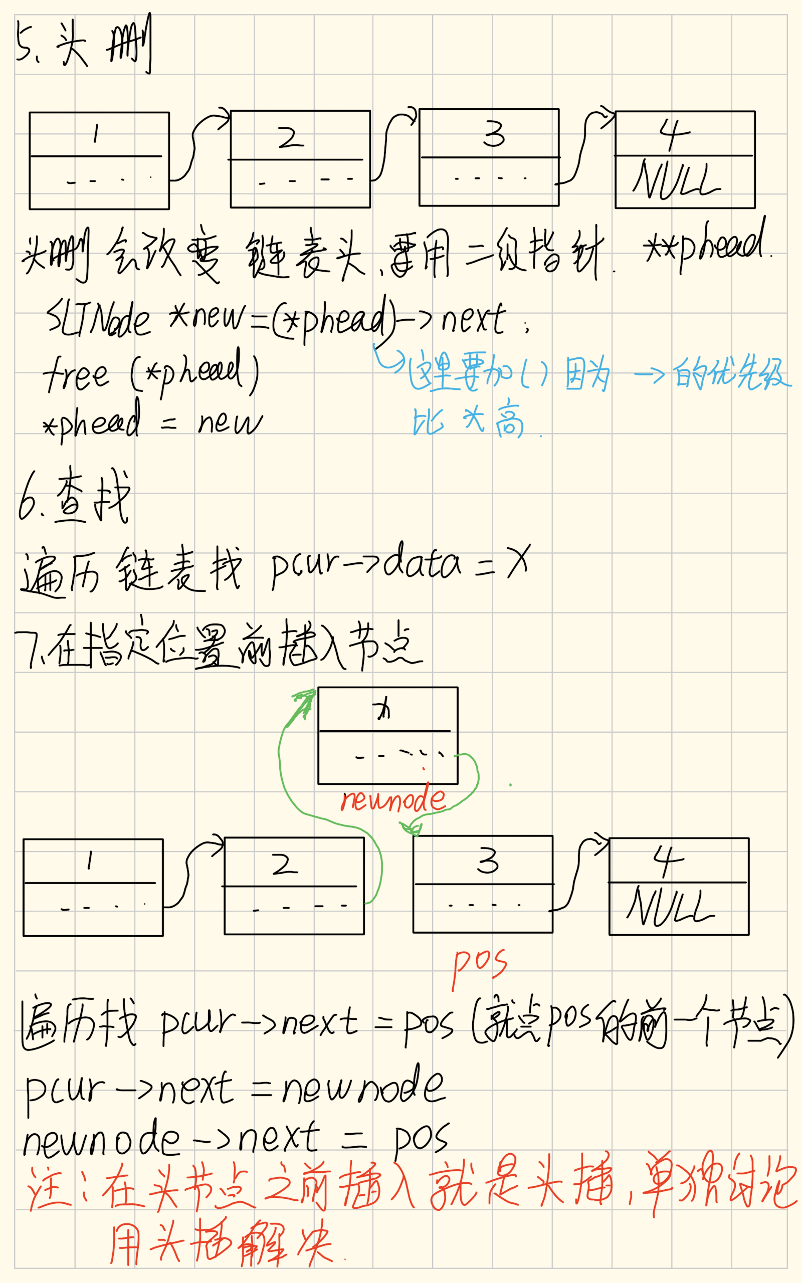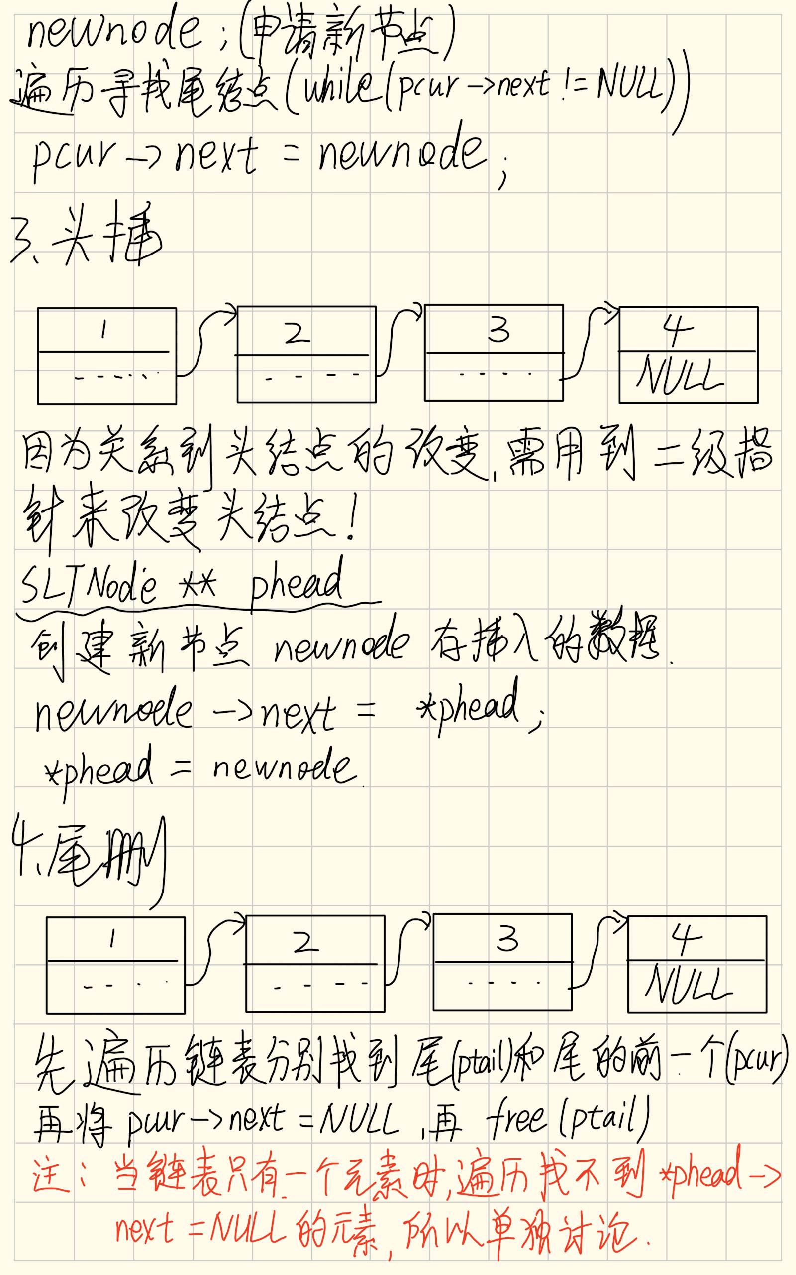 头插法这里会关系到头节点的改变,所以要传值调用,需要用到二级指针SLTNode** pphead来改变头节点。所以后面所有关系到改变头节点值的都需要用二级指针。