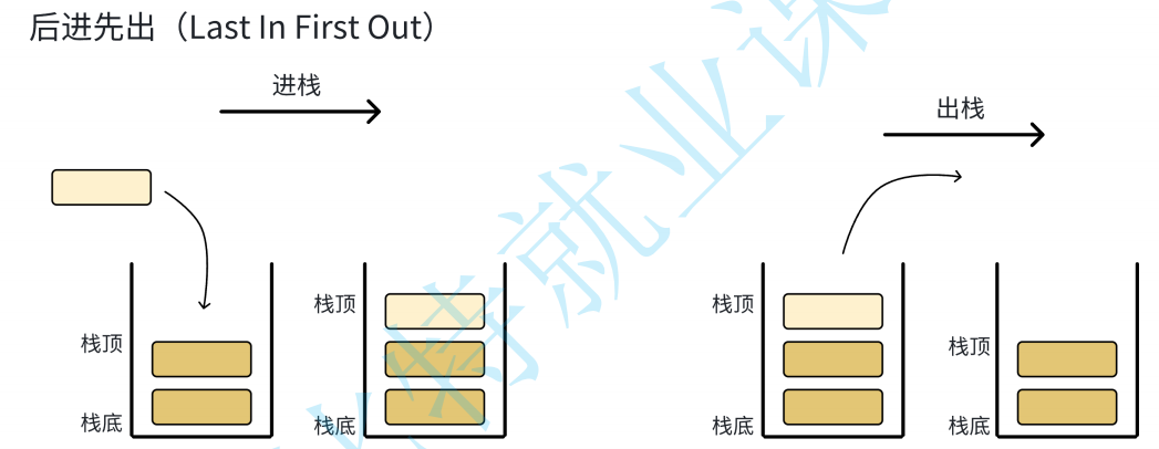 出栈:栈的删除操作叫做出栈。出数据也在栈顶。