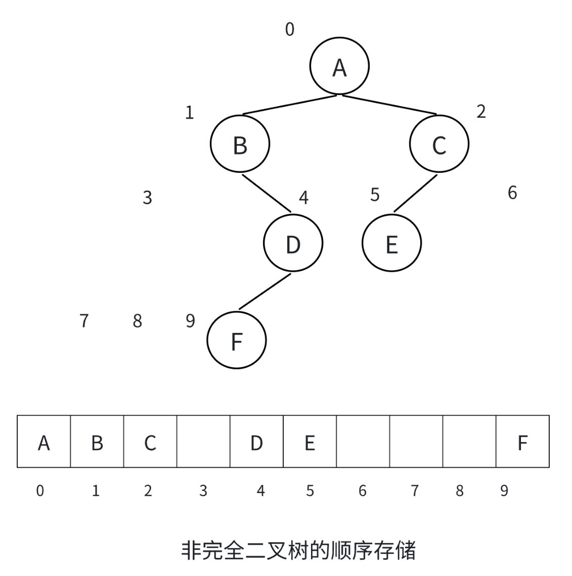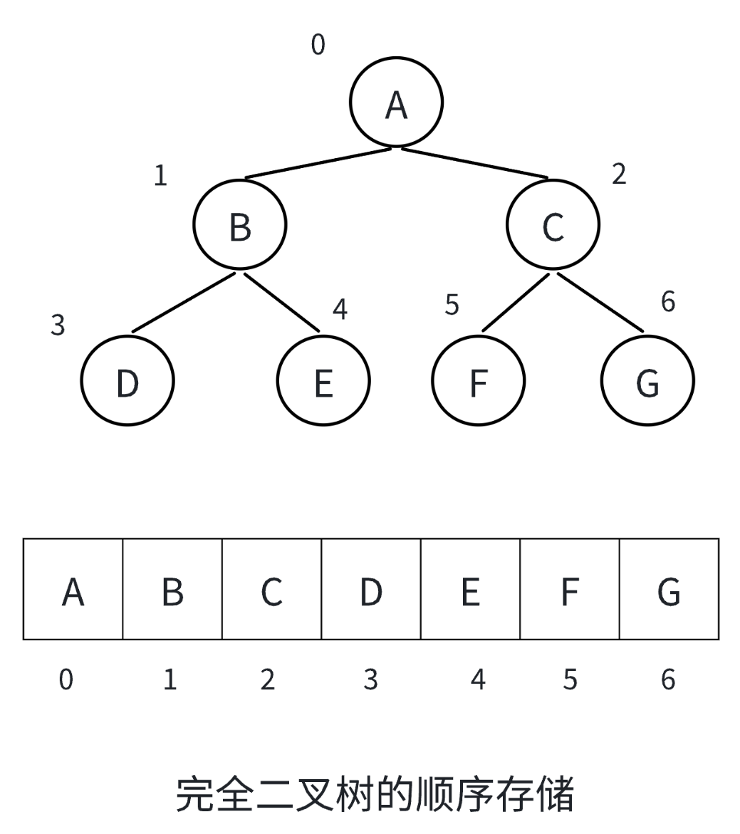 顺序结构存储就是使用数组来存储,⼀般使用数组只适合表示完全⼆叉树,因为不是完全⼆叉树会有空间的浪费,完全⼆叉树更适合使用顺序结构存储。