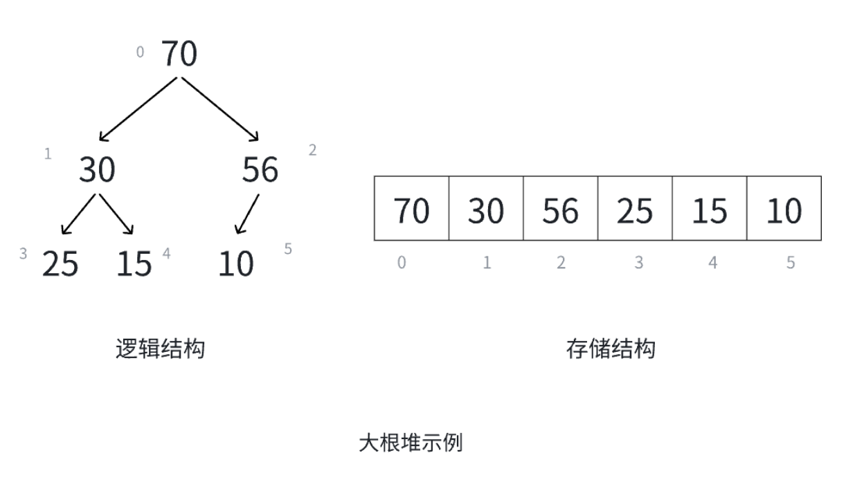 它的所有元素按完全⼆叉树的顺序存储方式存储,在⼀个⼀维数组中,则称为堆。(堆就是一种完全二叉树)。堆还分为大堆(大根堆)和小堆(小根堆)。将根结点最大的堆叫做最大堆或大根堆,根结点最小的堆叫做最小堆或小根堆。