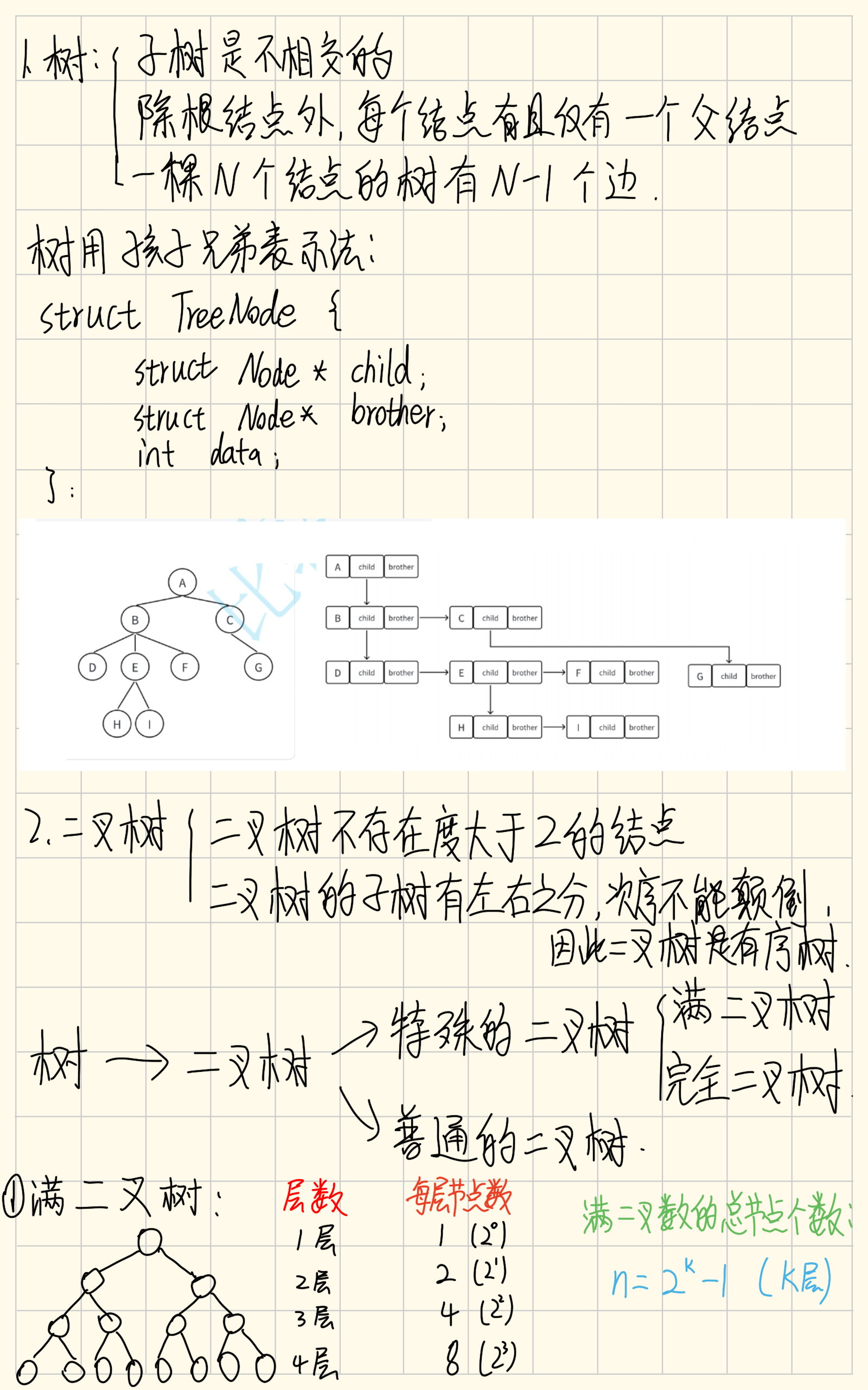 2.二叉树的子树有左右之分,次序不能颠倒,因此二叉树是有序树