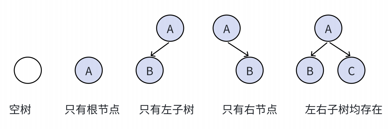 注意:对于任意的二叉树都是由以下几种情况复合而成的