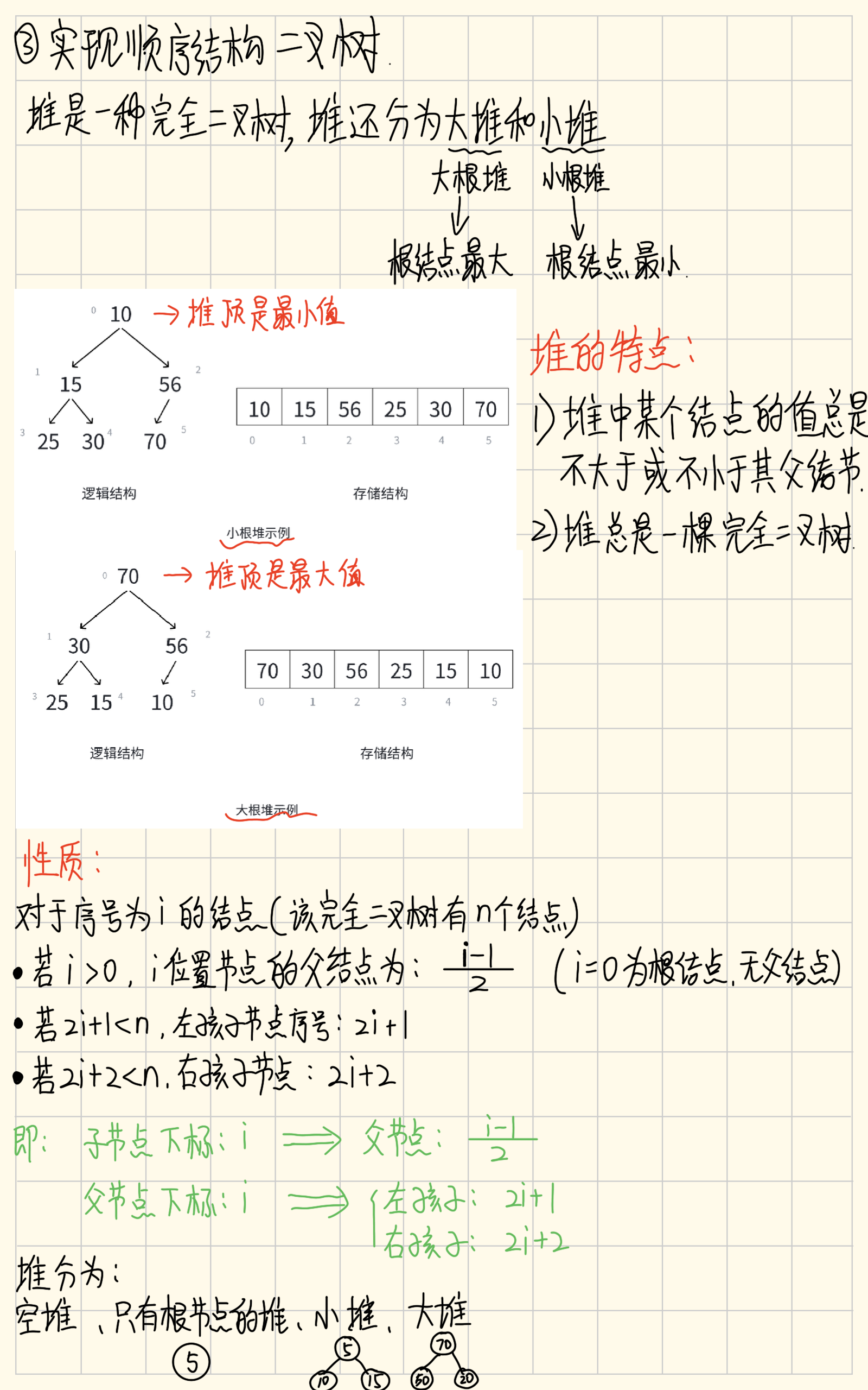 1. 若 i>0 , i 位置结点的父序号: (i-1)/2 ; i=0 , i 为根结点编号,⽆双亲结点
