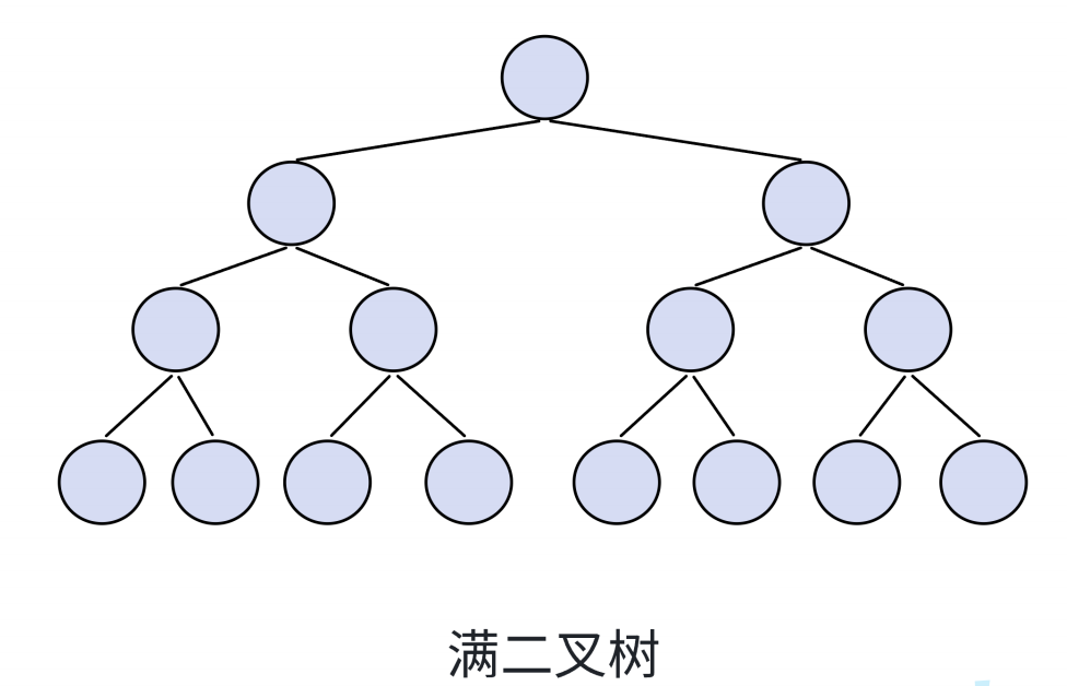 ⼀个二叉树,如果每⼀个层的结点数都达到最⼤值,则这个二叉树就是满二叉树。也就是说,如果⼀个二叉树的层数为 K ,且结点总数是 2 k − 1 ,则它就是满二叉树。