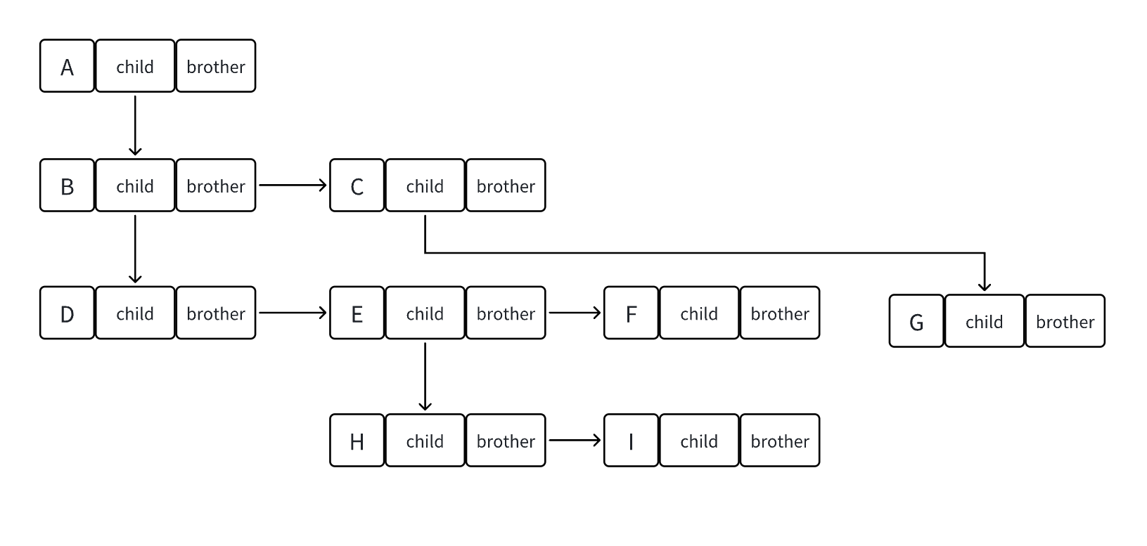 struct Node* brother; // 指向其右边的下⼀个兄弟结点
