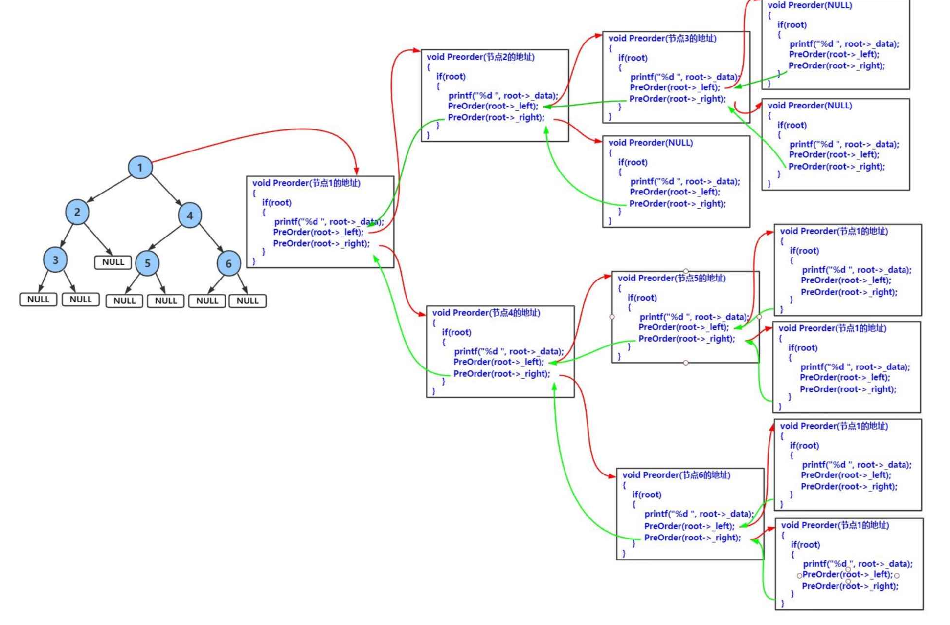 访问根节点的操作发生在遍历其左右子树之前。访问顺序为:根节点、左子树、右子树