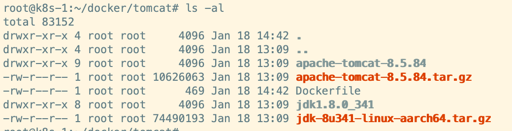 注意,apache-tomcat-8.5.84、jdk1.8.0_341和Dockerfile要放到同一个目录下