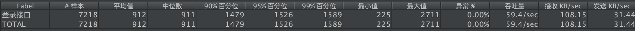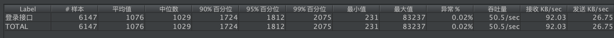 最终效果,登录接口吞吐量在60/s, 响应时间在1.2s之内。即以目前的资源状态,可以支撑5万用户在15分钟内登录,并且体验基本流畅。预计可满足前期并发需求。