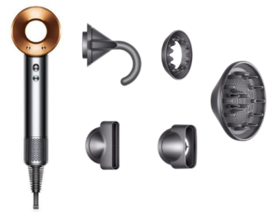 戴森Supersonic™ 吹风机配备5种不同风嘴以提供稳定可控的气流,所有的配件都能在触摸时保持适宜的温感。通过空气隔热技术,热空气被像三明治一样包含在冷空气中,让风嘴的表面始终保持适宜的温感,减少在造型过程中潜在的烫伤危险。