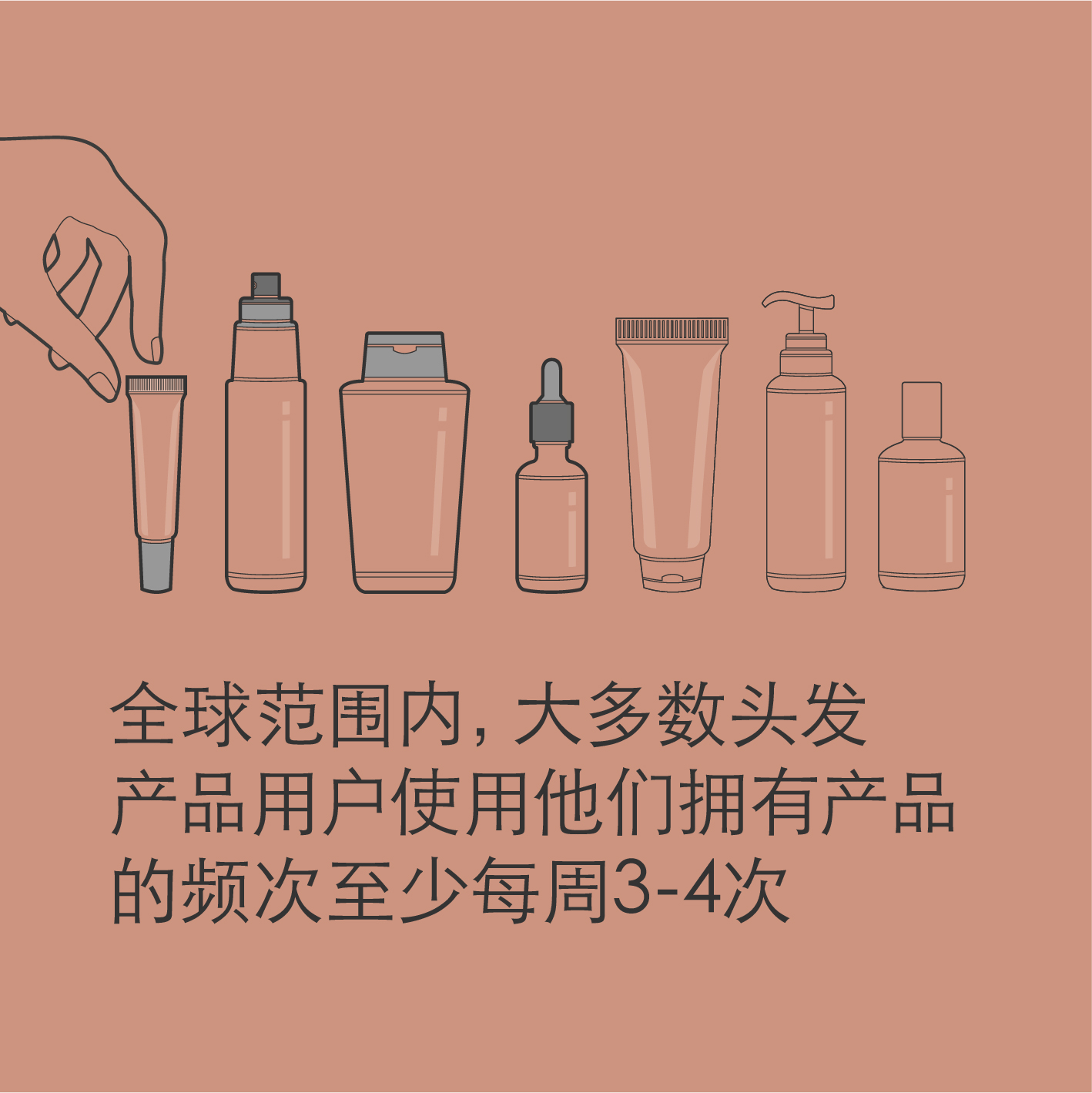 然而,人们依旧勤于进行基本的头发维护和造型,比如每周使用3-4次定型喷雾、保湿产品、亮泽产品及普通护发素。