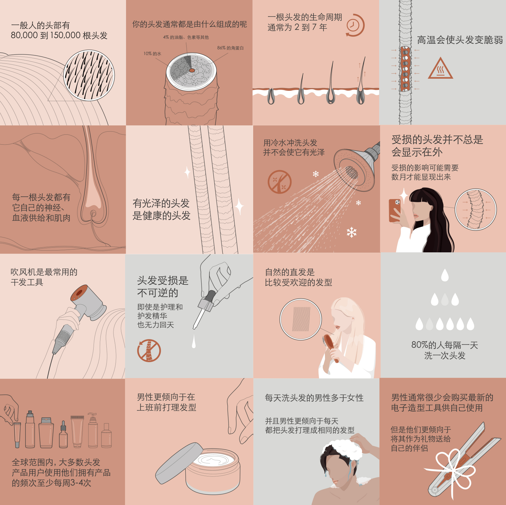 戴森不断发掘消费者日常生活中的头发问题隐藏痛点,这些痛点都需要专家学者通过深入调查才能得出。为发现消费者说不出的头发问题,戴森专门针对全球23个国家和地区,年龄在18-65岁间的23000名受访者,进行了深入的观察及调研,使戴森工程师更深入地了解消费者在造型过程中面临的实际困难。