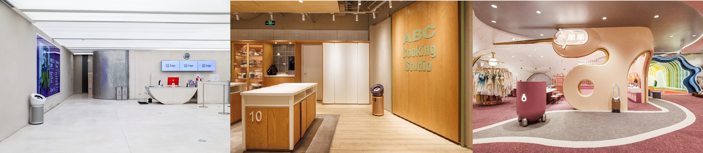 左-摄于UCCA Edge;中-摄于ABC Cooking Studio上海万象城店; 右-摄于奈尔宝家庭中心上海豫园店