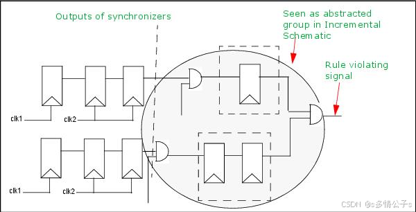 规则检查不同时钟域信号经过同一个时钟域同步器后聚合在一个net上(跟AC_conv02差不多)。