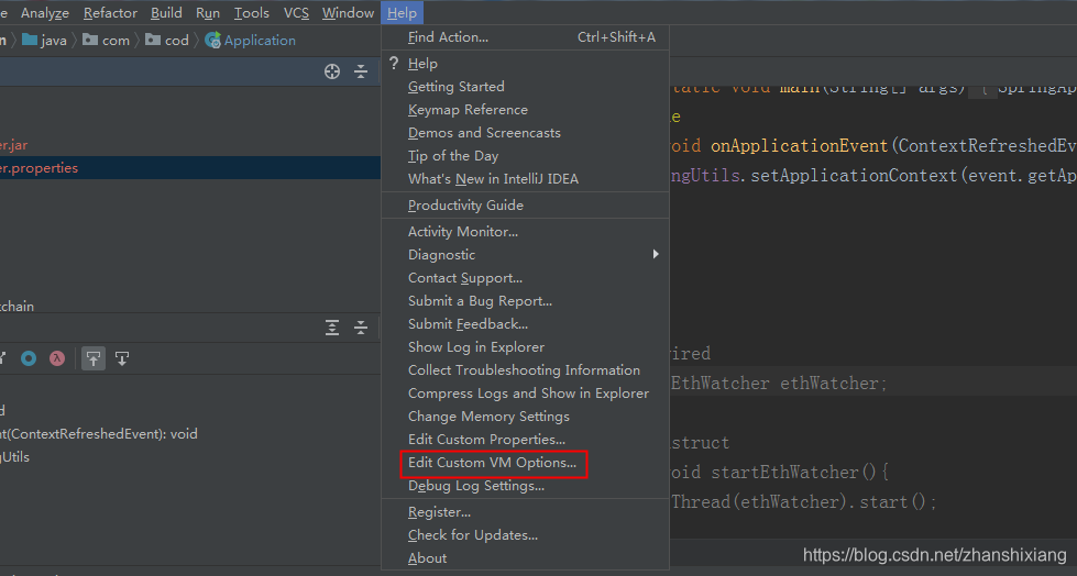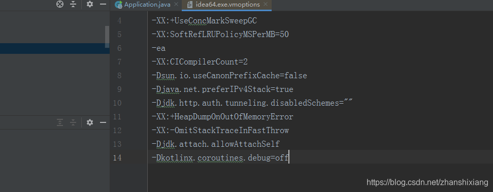 idea顶部面板:help->Edit Custom VM Options 打开一个配置文件。