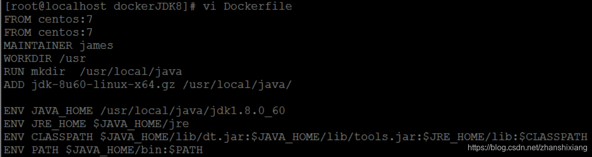 | FROM image_name:tag | 定义了使用哪个基础镜像启动构建流程 |