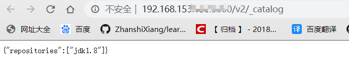 (3)打开浏览器 输入地址http://192.168.184.141:5000/v2/_catalog看到{"repositories":[]} 表示私有仓库搭建成功并且内容为空