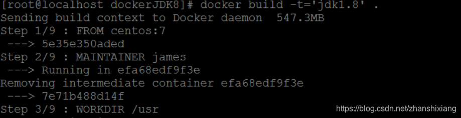 - 执行dockerfile中的下一条指令直到所有的指令都执行完