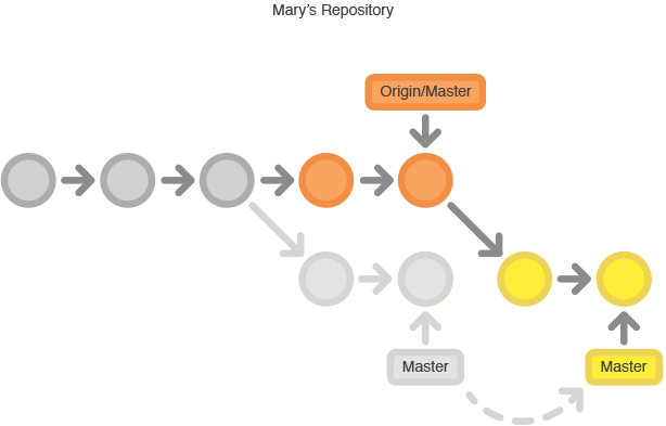 中央仓库代表了正式项目,所以提交历史应该被尊重且是稳定不变的。如果开发者本地的提交历史和中央仓库有分歧,Git 会拒绝 push 提交否则会覆盖已经在中央库的正式提交。