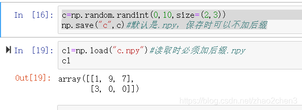 numpy中还有一种独有的存储解决方案。文件名是以.npy或者npz结尾的。以下是存储和加载的函数。