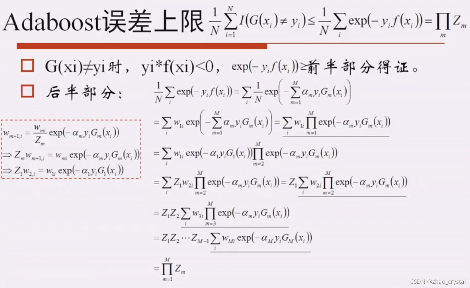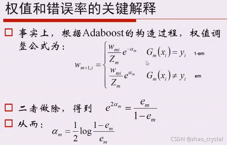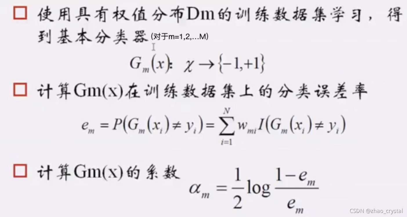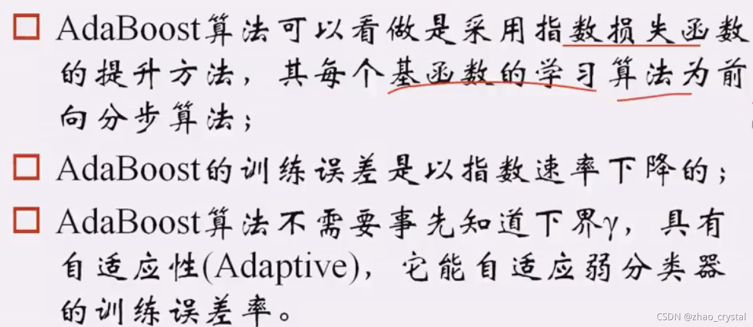 提升的理论意义:如果一个问题存在弱分类器,则可以通过提升的办法得到强分类器。