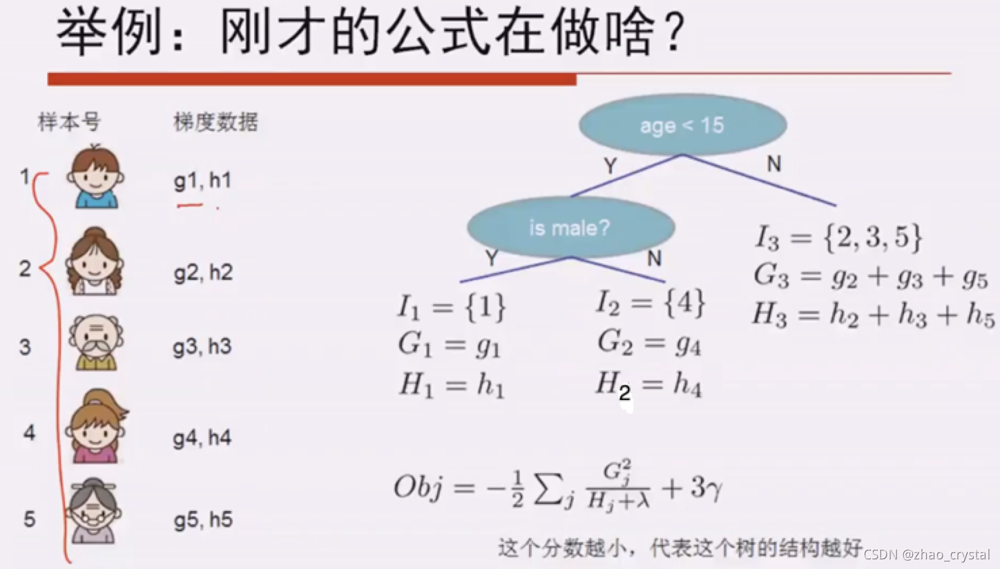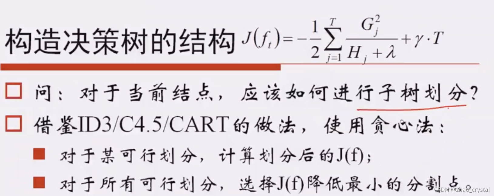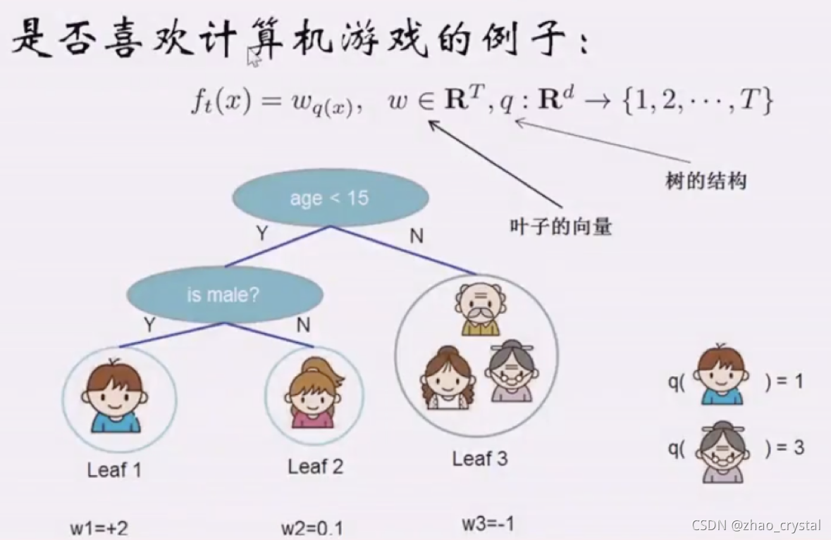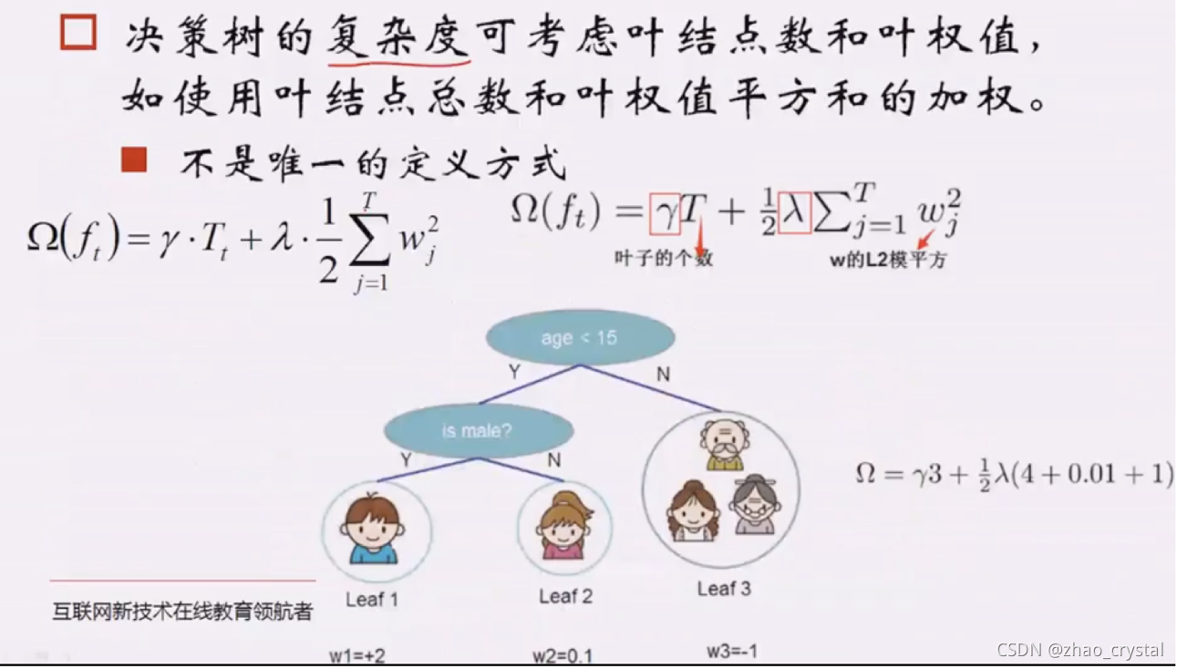 假定某决策树的叶节点数目为T,每个叶节点的权值为w=(w1, w2, w3, wT), 决策树的学习过程,就是构造如何使用特征得到划分,从而得到这些权值的过程。(一个决策树的核心即:“树结构”和“叶权值”)