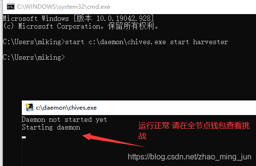 6、执行 start c:\daemon\chives.exe start harvester 命令启动收割机程序