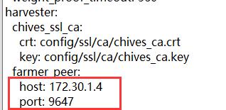 也可以通过修改%USERPROFILE%\.Chives\mainnet\config\config.yaml配置文件中的harvester->farmer_peer->参数进行修改(,请仔细查找)具体见下图