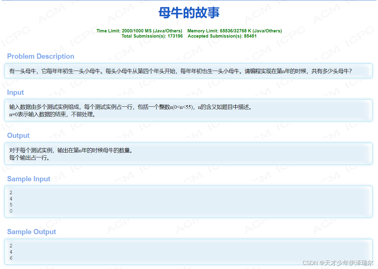hdu 2018 母牛的故事 http://acm.hdu.edu.cn/showproblem.php?pid=2018