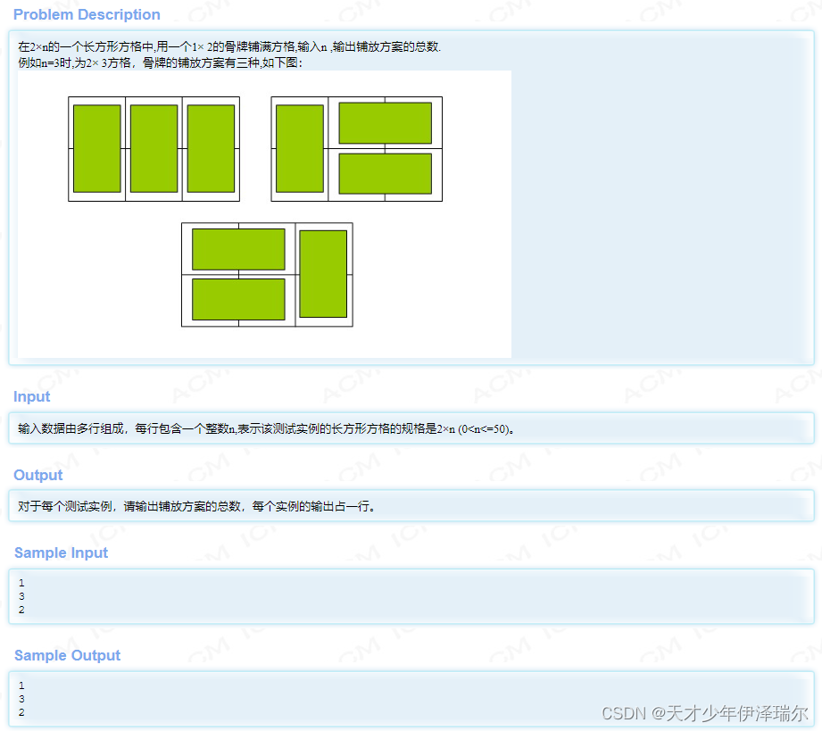 hdu 2046 骨牌铺方格 http://acm.hdu.edu.cn/showproblem.php?pid=2046