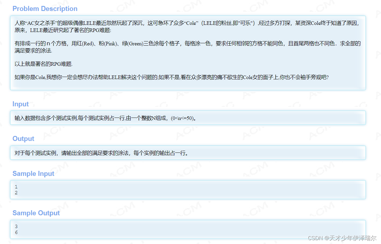 hdu 2045 不容易系列之(3)—— LELE的RPG难题 http://acm.hdu.edu.cn/showproblem.php?pid=2045