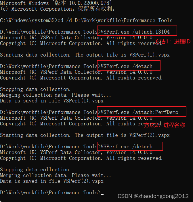 开始抓取性能报告:vsperf /attach:[pid/exename]