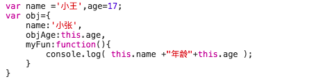 obj.objAge; // 17 obj.myFun() // 小张年龄 undefined
