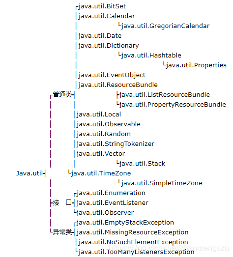 java.util包含集合框架、遗留的 collection 类、事件模型、日期和时间设施、国际化和各种实用工具类(字符串标记生成器、随机数生成器和位数组、日期Date类、堆栈Stack类、向量Vector类等)。集合类、时间处理模式、日期时间工具等各类常用工具包