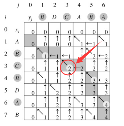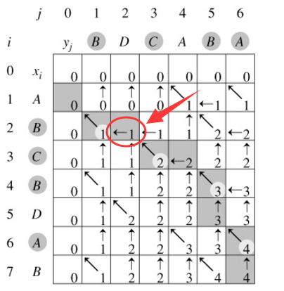 红圈内的x是B,y是D,即x不等于y.那么我们就要看红圈上左边和上边 的数值了,选择一个大的数值写入。