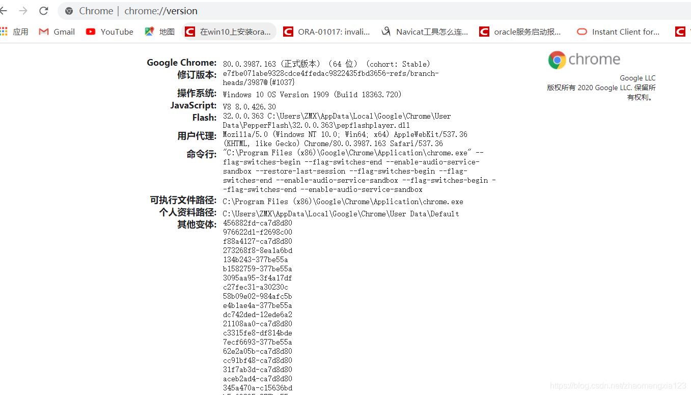 1.打开chrome 输入 “chrome://version/”来查看chrome版本 如图是80