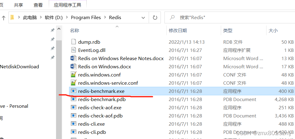 在解压所在的目录,如:D:\Program Files\Redis 执行cmd 命令 打开cmd窗口