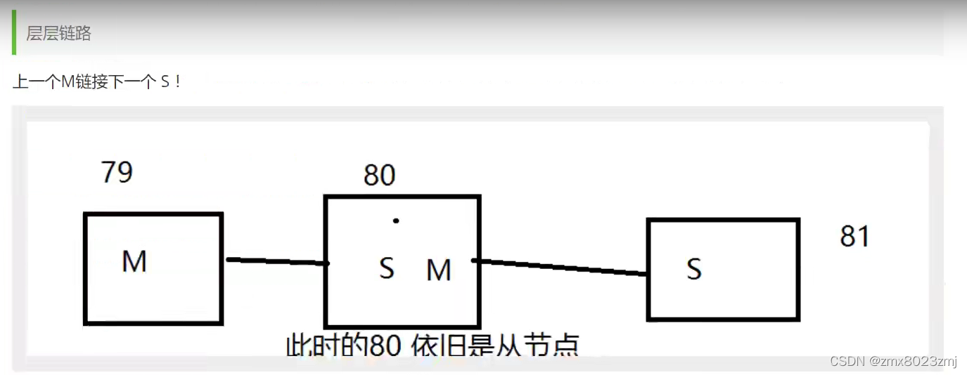 6379 是6380的主机,6380是6381的主机。这时候6380的角色仍然是从机,但是这种仍然可以完成主从复制,即两台从机都会从主机获取同样的数据。