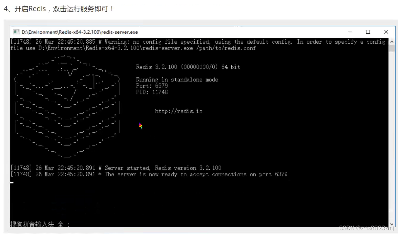 执行 redis-server.exe redis.windows.conf 命令