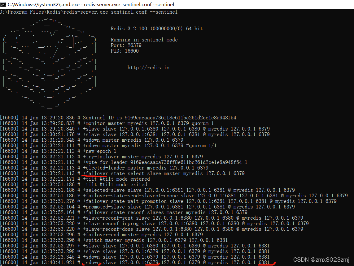 windows环境 redis 利用哨兵模式 当主机挂掉的情况下 实现自动选举 从机 里的其中一个作为主机