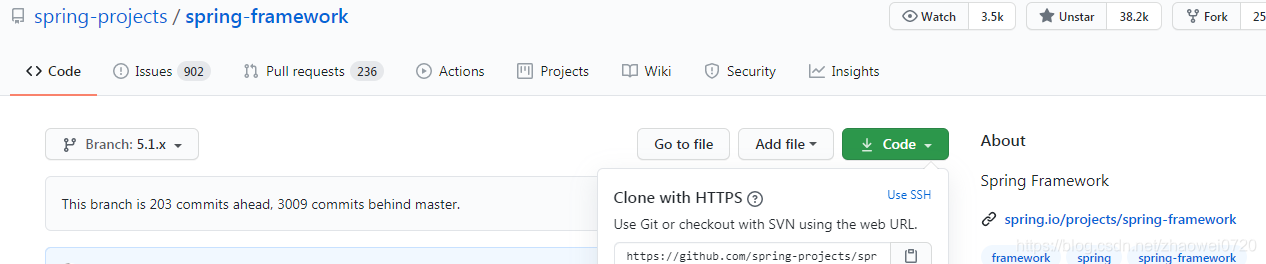 步骤2.进入GitHub,选择branch 5.1x,点击code,复制链接