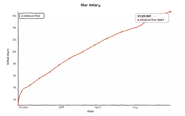 回顾 Arthas Star 数的历史,一直保持快速增长,目前已经突破 16 K。