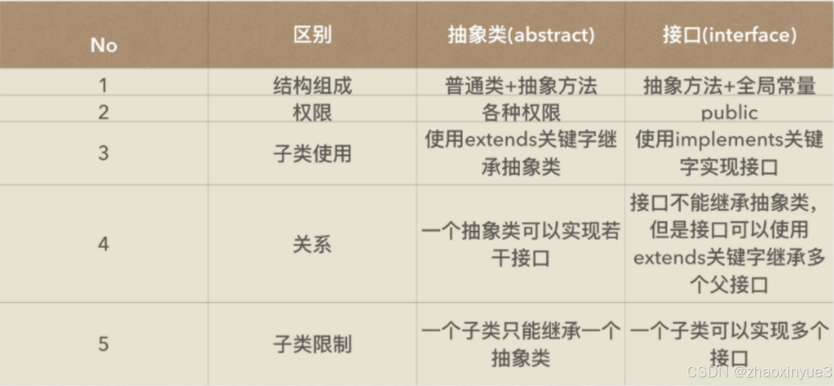 2. 接口中每一个方法都是public的抽象方法, 即接口中的方法会被隐式的指定为 public abstract(只能是 public abstract,其他修饰符都会报错)