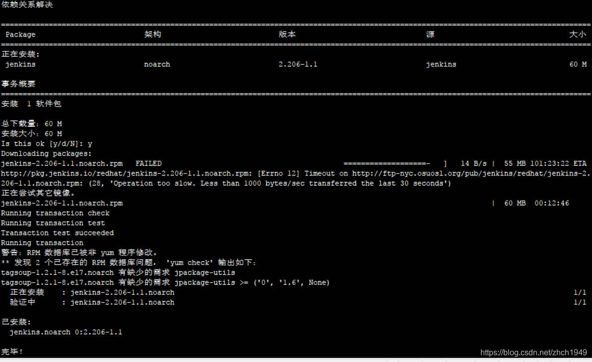 正在安装 : jenkins-2.206-1.1.noarch 1/1