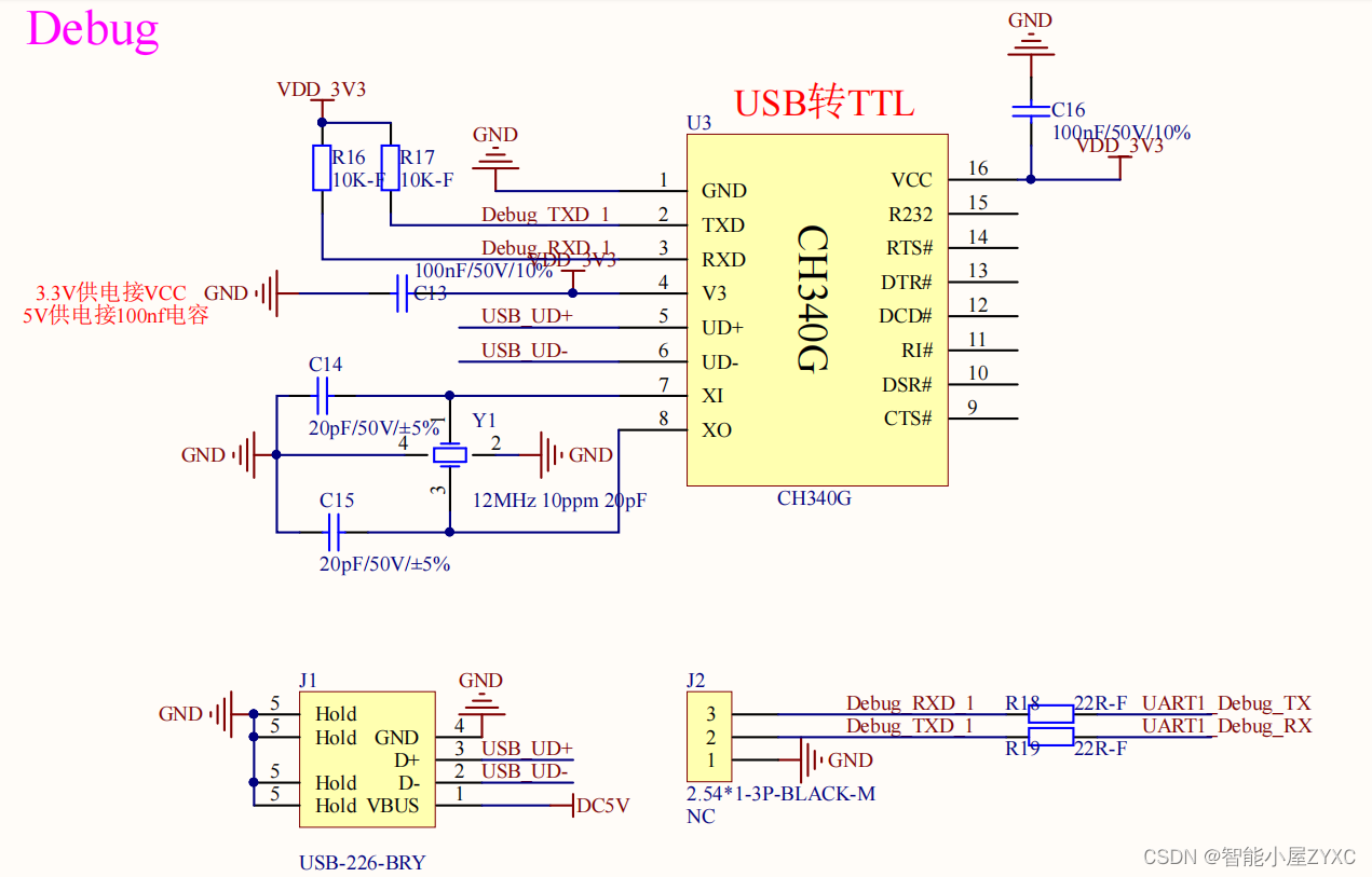 TTL转CH340串口,硬件原理图如下所示: