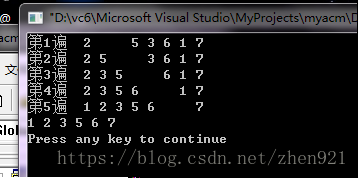 /* 中间注释部分是上面截图的运行过程展示,与排序过程无关