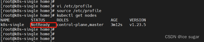 执行kubectl get nodes,可以看到status是notReady的状态,而正确的应该是ready状态才是。如图: