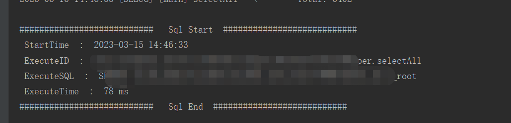,startTimeStr,executeID,this.buidSql(sql,args.toString().split(",")),exeTime));4.5打印效果
