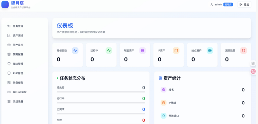 本项目参考了 adysec/ARL 的设计思路基于原版资产侦察系统深度重构的开源安全平台,采用 Go + React 技术栈,集资产发现、端口扫描、指纹识别、漏洞检测与资产监控于一体。系统重构核心扫描引擎,支持自适应速率与实时结果保存,无需依赖外部工具即可高效运行。面向安全研究人员与红队团队,提供更灵活的配置管理与更稳定的扫描体验,用于授权范围内的资产测绘与安全检测。
