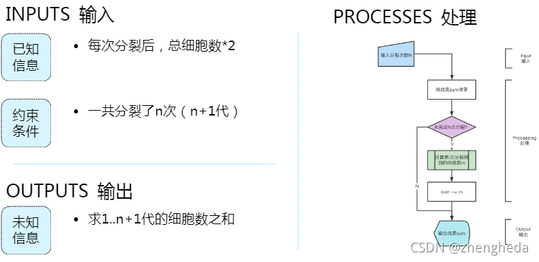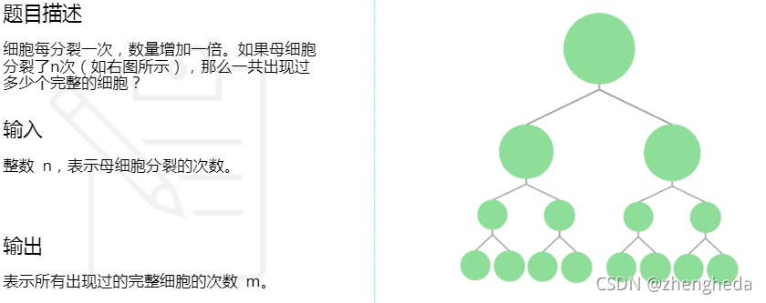 本文使用C++探讨细胞分裂问题,细胞每分裂一次数量翻倍,经过n次分裂后,计算总共产生的完整细胞数。通过IPO模型进行分析,并提供两种不同的代码实现。